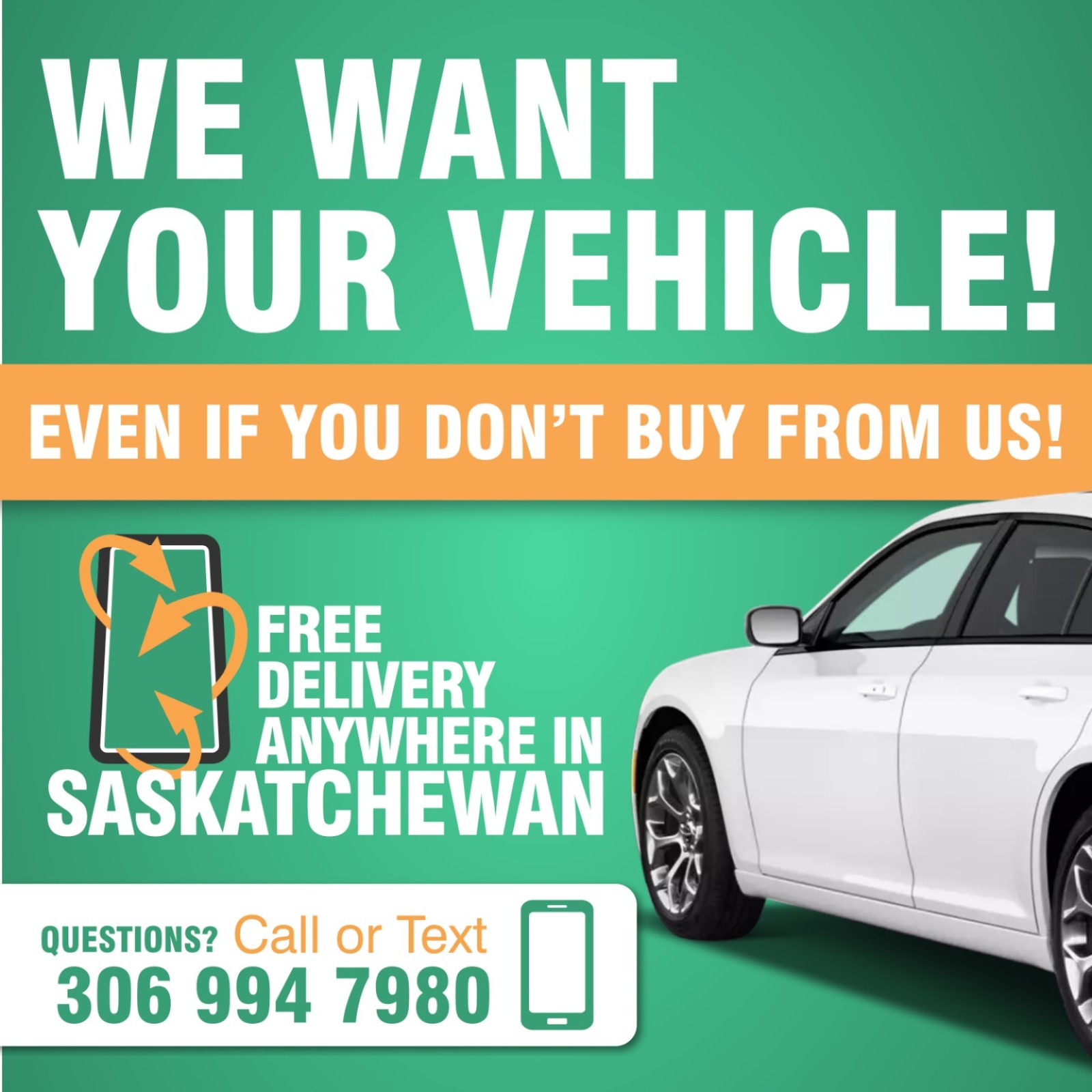 We offer free delivery to anyone who purchases a vehicle, to anywhere in Saskatchewan!